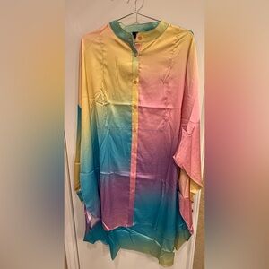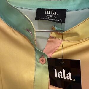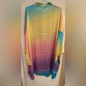 Dressed in Lala Brand Satin Playsuit in Rainbow Daydream