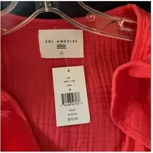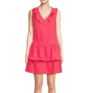 NWT Sol Angeles 100% cotton Ruffle V Neck Mini Dress - Pink M