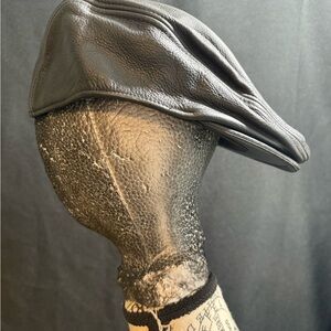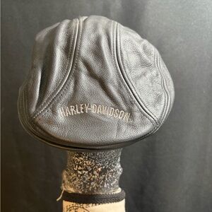 Vintage 2000s Harley Davidson Motorcycles Leather Newsboy Hat Black large