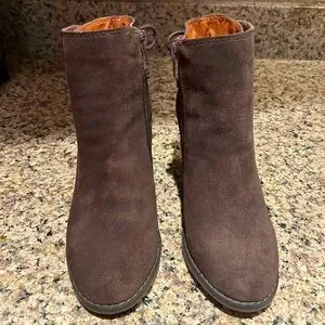 Lucky Brand Yamina ankle bootie. EUC. Brown suede. Inside zip closure. Bow detail on back. Women’s size 6. 3” wedge heel.
