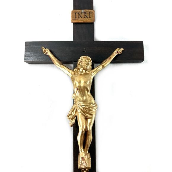 18” Walnut Crucifix – RH Crosses Gold Jesus Wall Cross – Christ Our King
