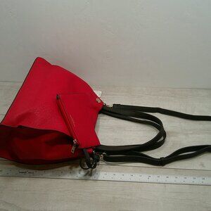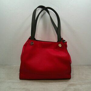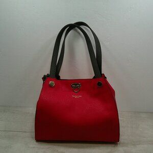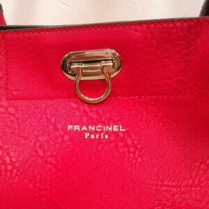 Francinel Paris Cherry Red & Brown Leather Satchel Purse | Pocketbook New with Tags. Francinel emphasizes quality craftsmanship, using a combination of authentic and synthetic materials, and aims for a blend of timeless style and practical features in their products.
