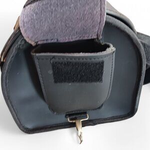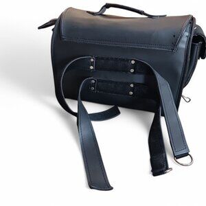 Rev up your ride with this Vintage Leather Motorcycle Tail Bag – a rugged and reliable rear seat backpack perfect for outdoor sports, travel, and everyday adventures. Crafted for utility and style, this unbranded waterproof saddle bag features padded lining, a roomy main compartment with buckle-flap closure, and convenient side pockets with Velcro closures. Clean interior, with a minor spill on the top flap. Easily attaches to your bike with secure Velcro straps. Measuring approx. 14" L x 9" W x 8.5" H, it’s ideal for tools, gear, and essentials. In very good vintage condition, built to go the distance. Ride ready!