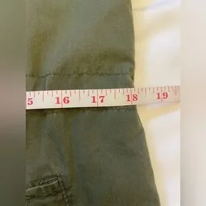 -Features: Army green medium utility jacket. There is a little bit of wear shown in pictures but still in great shape. No stains or holes that I could find.