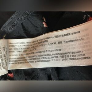 Black background. Black lace around neckline. Adjustable spaghetti straps. Perfect under a blazer or cardigan. Wrinkles included at no extra cost 😉