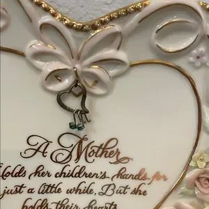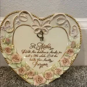 This elegant heart-shaped plaque features a touching sentiment for mothers. Adorned with delicate pink and cream roses, it's a beautiful accent for any home.