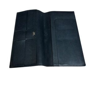Travel in timeless luxury with this authentic Hermès travel wallet in supple black leather. Designed with sophistication and functionality in mind, it features multiple slots for passports, boarding passes, and cards. The interior is stamped with “Hermès Paris Made in France” in gold lettering, a mark of craftsmanship and elegance.