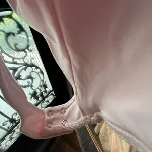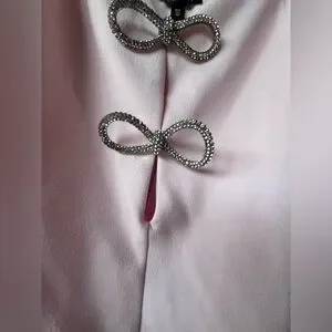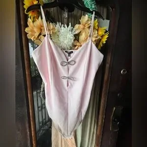 Pale Pink Textured Bodysuit Dynamite Top NWT Decorative Crystal Bows Size Large