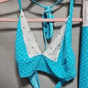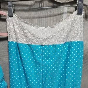 Vintage. Experience comfort and style with this elegant blue and white polka dot Dancer set. This set combines a chic design with ultimate comfort.