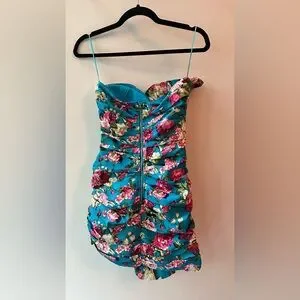 mable rhode dress mini bodycon rayon floral ruched sweetheart neckline strapless turquoise pink green size s 87