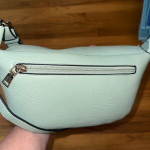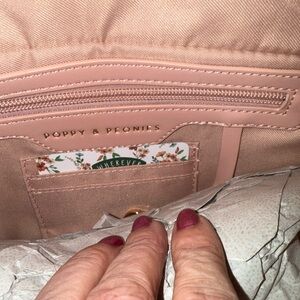 Elevate your style with this brand new Poppy and Peonies crossbody bag mint in color