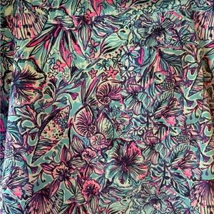 Beautiful Lilly Pulitzer skort with floral design. Features shades of blue and pink. Ideal for a vibrant outfit. With pockets and a pocket in back. Excellent condition! Only worn once, like new!!! It’s a beauty!! And very comfortable!!