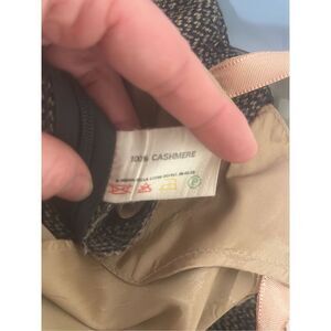 This piece is so gorgeous! Is has amazing flow and great details. It is a zipper closure, it is cashmere.