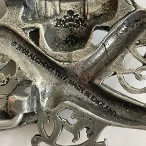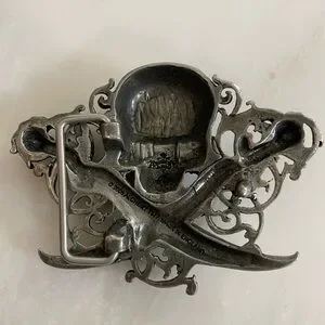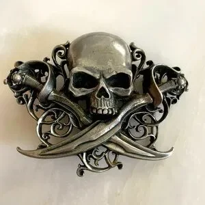 Alchemy Gothic 1977 metal pewter skull crossed sword belt buckle Made in England