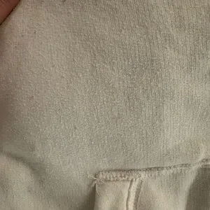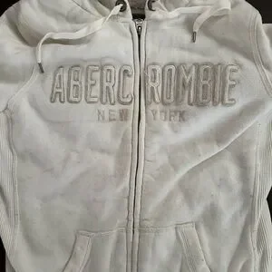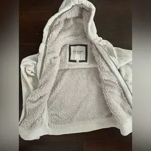 Abercrombie and Fitch Fur-Lined Jacket. This item is preloved. White jacket with fur in it. There are some small spots throughout, including on the inside of sleeve as pictured.