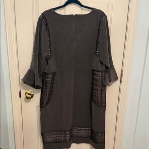 Elevate your style with this elegant charcoal dress. Features long sleeves and intricate detailing. Perfect for any occasion.