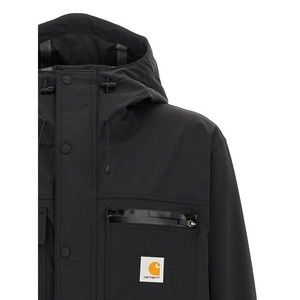 The Bowden Jacket By Carhartt Wip Epitomizes Functional Elegance With Its Waterproof Stretch Nylon Composition. A Protective Hood Enhances Its Utility, While A Drawstring At The Waist And Hem Allows For A Customizable Fit. Practicality Meets Style Through Multiple Pockets And Long Sleeves With Adjustable Cuffs. The Front Logo Adds A Distinctive Touch To This Outerwear Piece.
