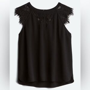 This elegant sleeveless top features a delicate lace trim, perfect for adding a touch of sophistication to any outfit. The classic black color makes it versatile for both day and night looks. Never worn!