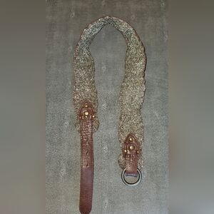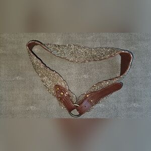 Anthropologie, Jasper & Jeera, Size M, versatile clear beaded and brown leather belt. 31-33" Circumference, 2.5 inches wide. Perfect for concert attire, or cinch in a dress with some boots. Great Condition