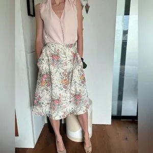 Vintage floral midi a line skirt