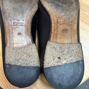 Gucci women’s loafer with Horsebit, Size 38, Black leather upper, Light gold-toned hardware Horsebit, Flat shoes, Authentic, I don’t have the original packaging, black color, used good condition.