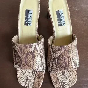 Leslie Fay Brown Snake Print Women's Sandals 7.5