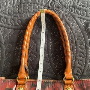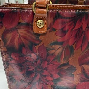 Patricia Nash, beautiful well-made quality leather handbag. New without tags. Zip compartment on the back of the bag. Inside zipper compartment and two inside pockets on side. Feeded bottom Elevate your style with this exquisite floral leather tote bag. Featuring a rich brown and red design, it's perfect for any occasion.