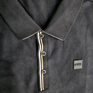 Sophisticated dark polo with stylish white trim. Ideal for versatile wear.