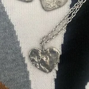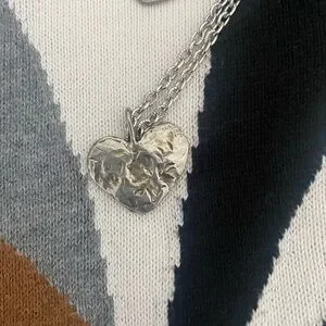 My friend Del made this set. I believd the actual hearts are sterling silver. They are not marked. They google lens like Silpada. But, no markings. Super cute. Necklace is 12 inches. Thank you for visiting ny shop.