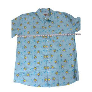 Tipsy Elves Mens Button-Up Shirt Tacosaurus Blue Tropical Dinosaur Mens XXL NEW
