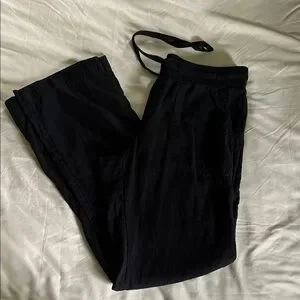 Caslon Linen Blend Black Straight Wide Leg Women's Pants Size XS