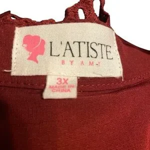 L'ATISTE Deep Red Lace Long Sleeve gold studded Dress