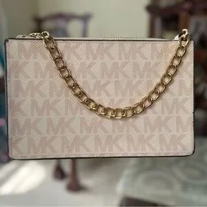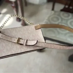 Michael Kors Monogram Nude Pink Leather Fanny Pack Belt with Gold Chain Zipper
