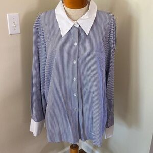 Bloomingdale’s perfect relaxed fit blue & white pin striped button down 24W