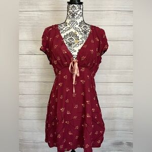 Chic mini dress with floral pattern. Features a deep V-neck and tie detail. Perfect for casual outings.