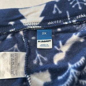 Old Navy 2X Soft pajama pants with a navy and white holiday winter pattern.
