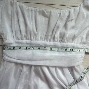Excellent condition. No flaws. Featuring a white sparkly chiffon overlay, this soft glam, ethereal dress brings the perfect touch of glam for any special occasion.