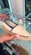 Neutral canvas, navy canvas trim, brown leather trim, small jute platform, Gucci logo white stitching