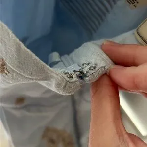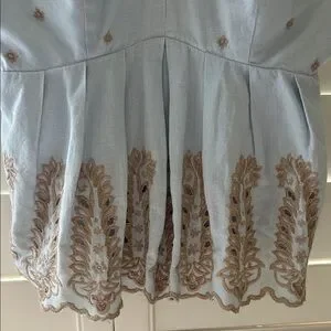 Elegant tank top with delicate embroidery. Light blue fabric with brown accents. Ideal for casual or special occasions. Adjustable straps and side zipper.