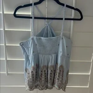 Moulinette Soeurs Light Blue and Brown Embroidered Tank Top