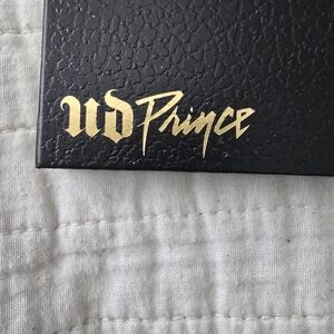 Urban Decay Prince eyeshadow palette in black and gold. Features iconic symbol design.
