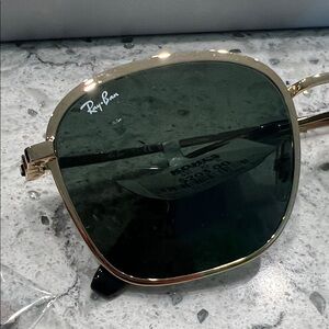 Stylish Ray-Ban sunglasses with a gold hexagonal frame. Features classic green lenses. Ideal for a modern look. NWT. Comes with case and dust cloth.