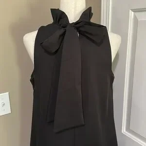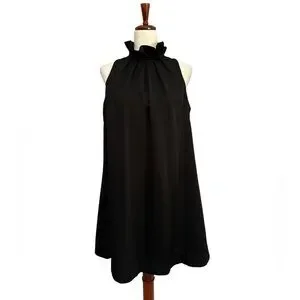 Featuring a playful ruffle neck that ties in the back and a sleeveless design, this dress is the perfect blend of simplicity and elegance. Made with 97% polyester and 3% spandex, it offers both comfort and style. Time to dress to impress!
