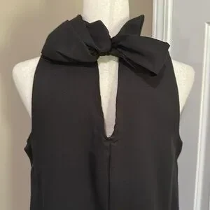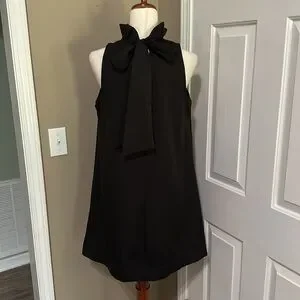 Umgee Ruffle Neck A-line Sleeveless Mini Dress with Bow Tie in Black