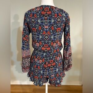 American Eagle AEO Long Sleeve Black Multicolored Floral Romper, Small XS