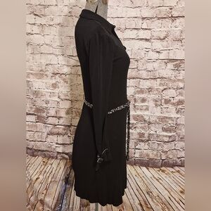 Diane Von Furstenberg Elegant Black Long Sleeve Dress Contrast Belt Size 2