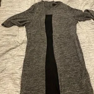 Stay cozy and stylish with this elegant gray open-front sweater. Perfect for layering, this versatile piece adds a touch of sophistication to any outfit.