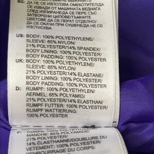 Super lightweight ‘climaproof’ jacket from adidas. In like new condition it has a front zip and zip pockets. The purple puffer body has a slight glimmer and sleeves are a deep purple. Size XL.