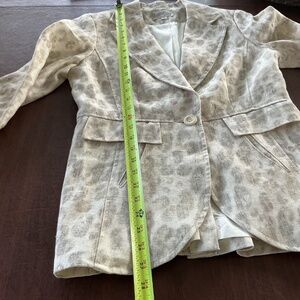 Alberto Makali Size 10 Cream Tan Linen Jacket Blazer Abstract Print USA Made