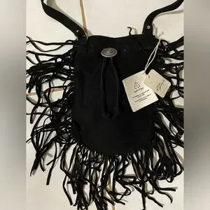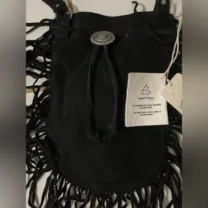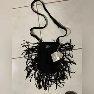 Free People (New With Tags) Suede Fringe Black Crossbody Bag
